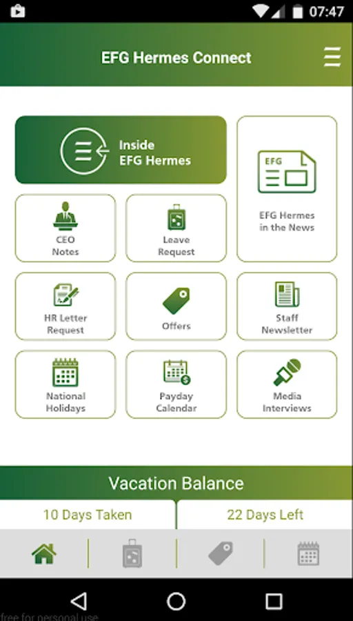EFG Hermes Connect for Android Mobiles offers EFG Employees free access to:
