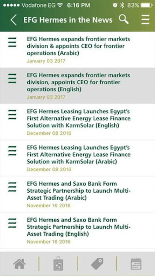 EFG Hermes Connect is the news channel used by EFG Hermes to communicate with EFG Staff. The EFG Connect Android Application will notify internal staff with EFG News.