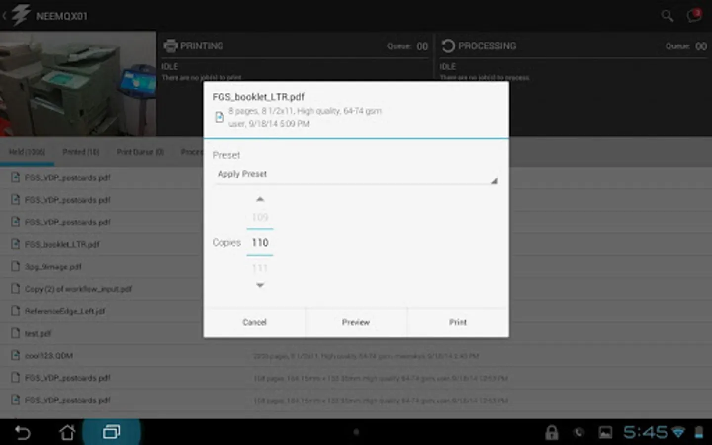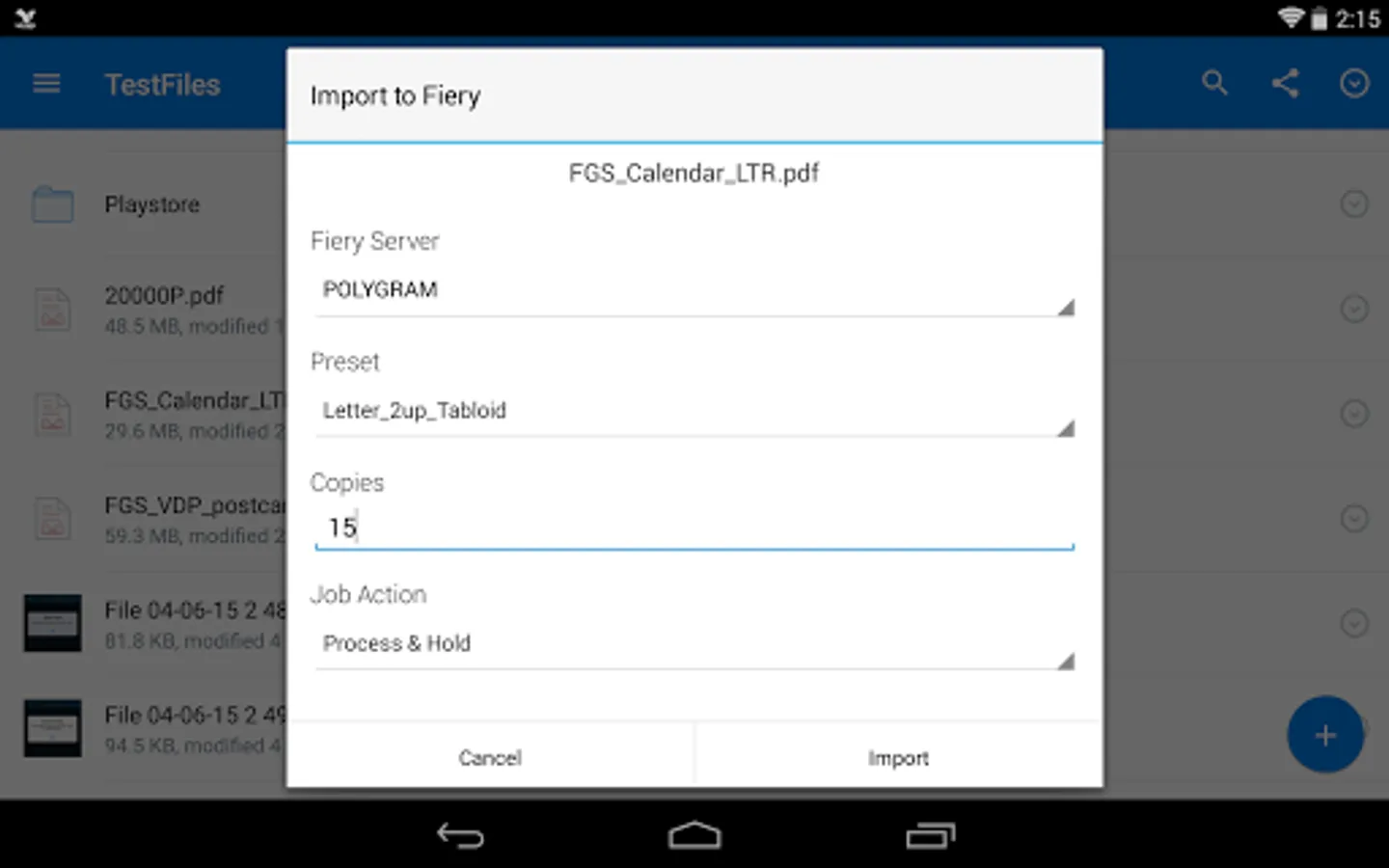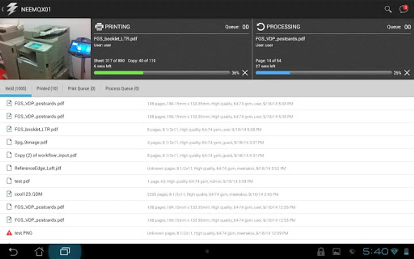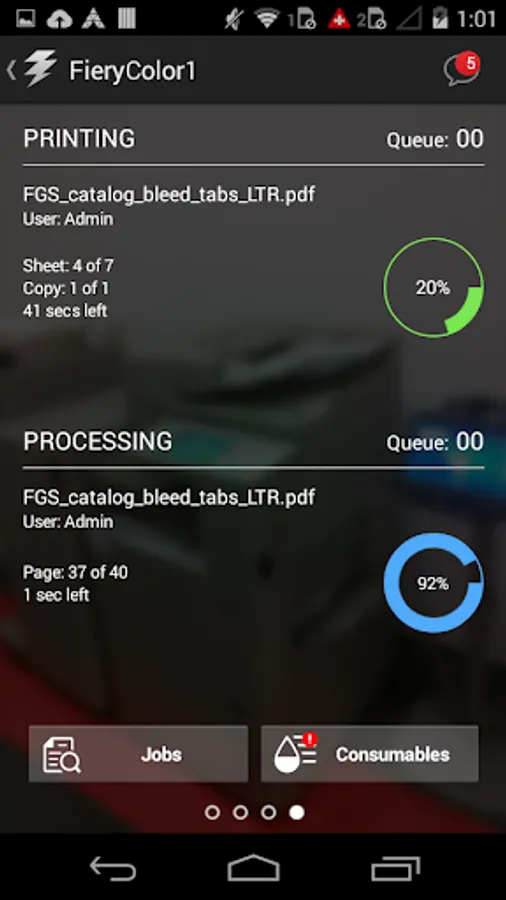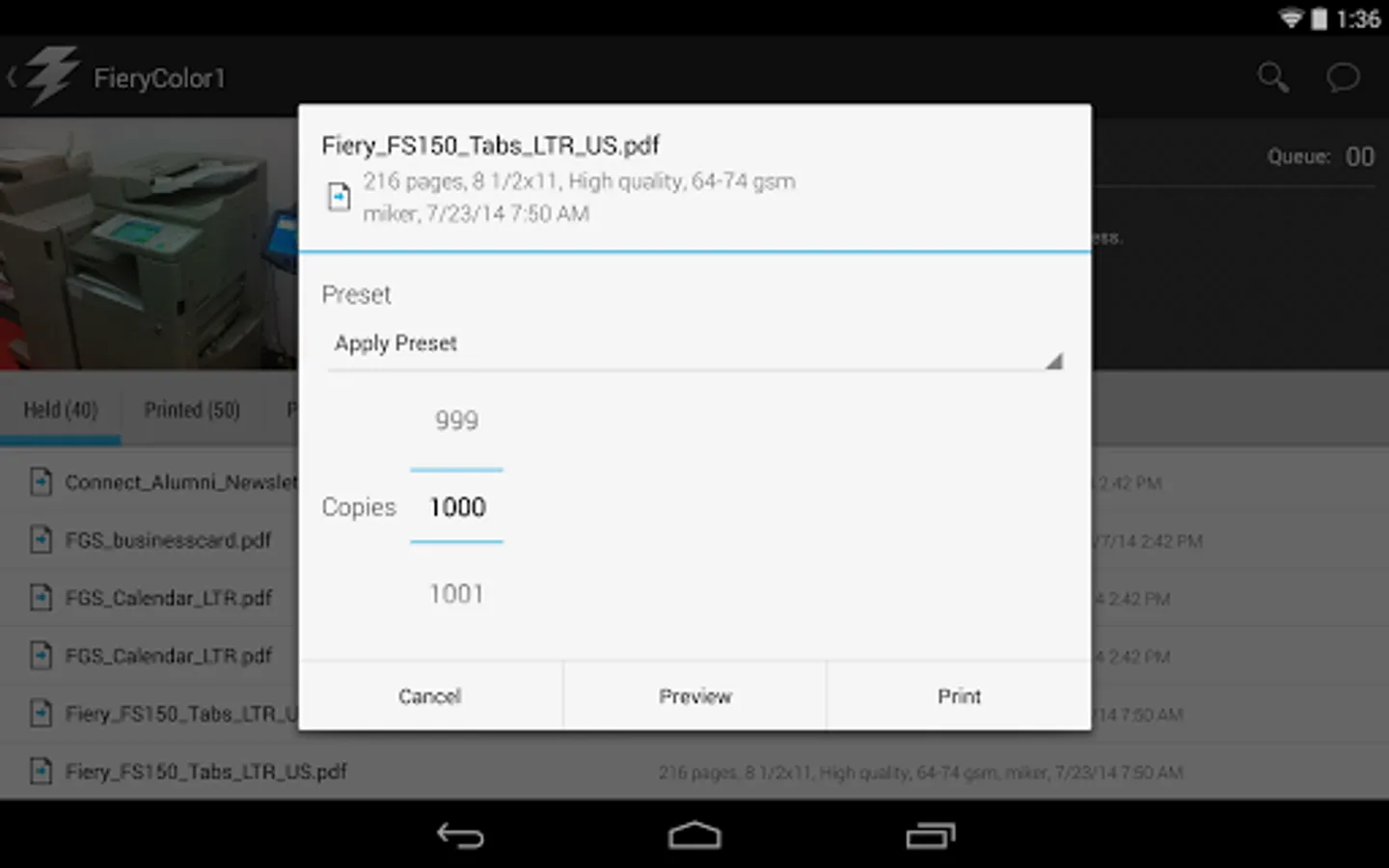 Fiery Go allows you to monitor the status of multiple Fiery Driven™ printers and manage print jobs from anywhere. Using Fiery Go, you can import jobs and perform multiple job actions like printing, deleting, previewing*, and defining job attributes. The app alerts you about consumable status, errors in the print job, paper jams and more, so you can take immediate action. Easy to learn and use, Fiery Go gives you more flexibility and allows you to multi-task for a more efficient workplace and higher productivity.