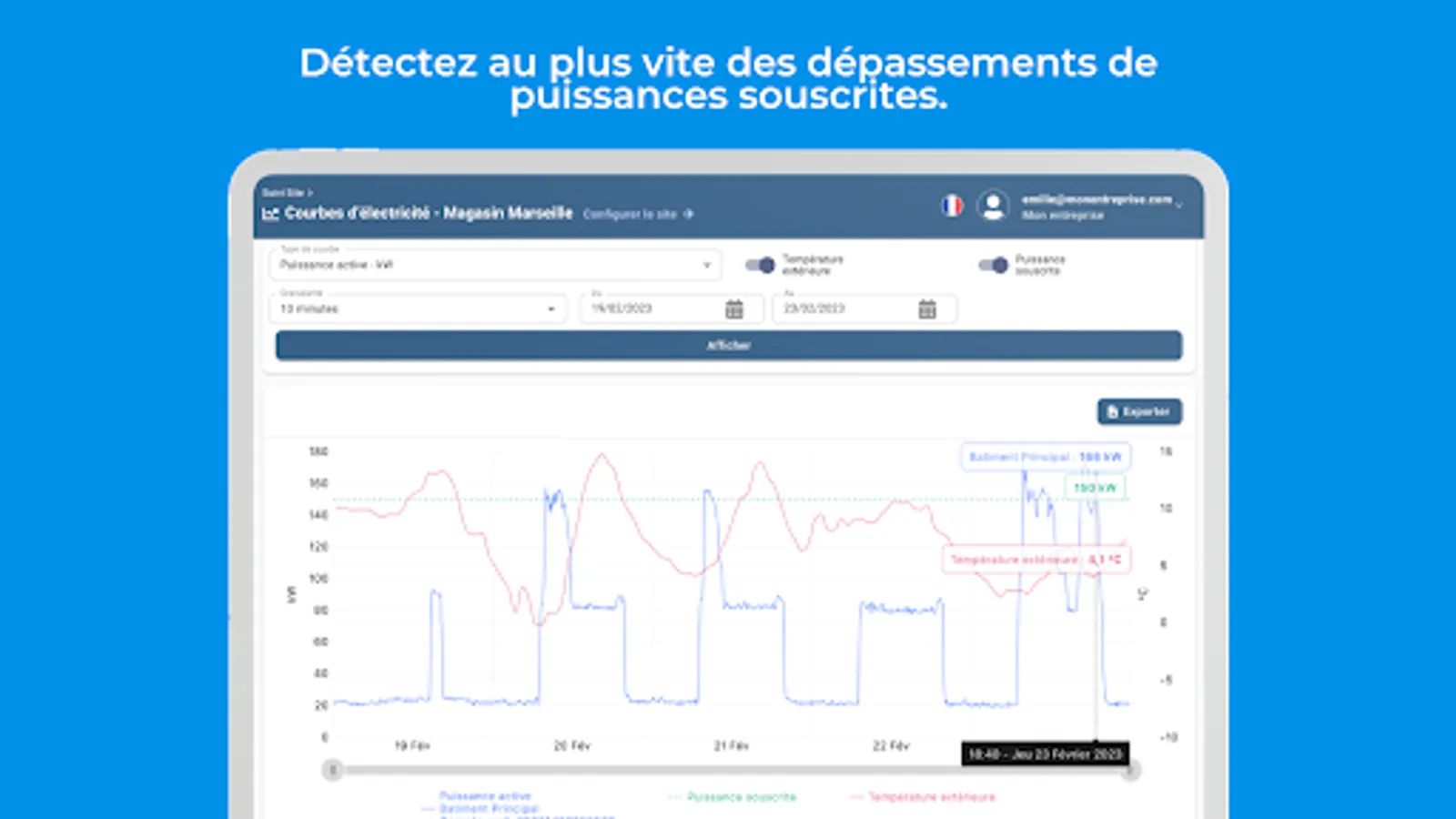 - Set up your alerts to be notified as quickly as possible in the event of the subscribed power being exceeded or an abnormal increase in consumption;