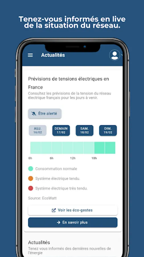 - Follow the news of the energy market and be warned in case of voltage on the network (Ecowatt signal)