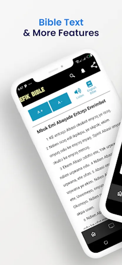 You can now study God's Word in the Efik (Edisana ñwed Abasi Ibom) local language for the people of western Nigeria. Apart from Igbo, Yoruba Bible and Hausa published Bibles, This App allows you to search for scriptures from Genesis to Revelation in the native language of the people of Benue Niger lingua, in Nigeria and Benni and even some people in the South Eastern of Togo. The app is also available for even foreigners who desire to study the Efik languages.