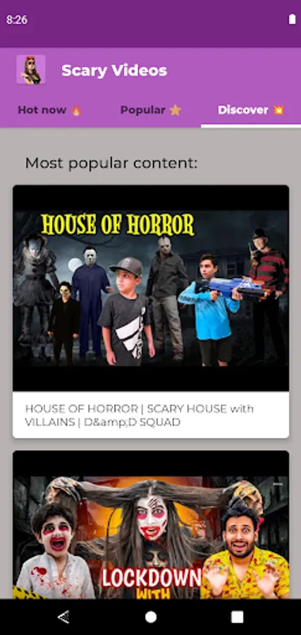 Scary videos is the best android app if you want to have a nice Halloween party at home listening to urban legends, creepy stories, and horror movie clips. More than 250 horror sounds are in different languages from the world. Hindi, Tamil, English, Portuguese or Spanish, you only have to select your native language and start having fun with creepy stories about zombie invasions, dead ghosts our haunted houses. The best scary movies to know creepy urban legends. Everything online! Just navigate through our playlist to find American apocalypse clips and VR videos to get frightened.