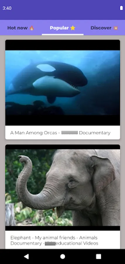 Explore our cute puppies' funny videos and spend a nice time learning about dangerous animals and the mysteries of the wildlife. Animal documentary online is a good app if you want to share our videos with friends or family through social networks. Improve your history knowledge by playing a documentary film about the deep sea, birds or dinosaurs. You only need your smartphone and an internet connection to do streaming. Discover how the beast is brute among other species in documentaries 4K. From the past to the present, receive the right information about the world fauna and flora.