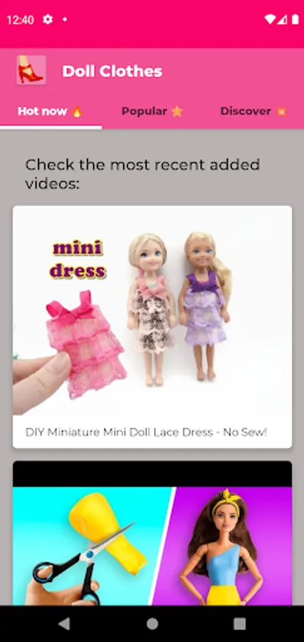 Discover the most popular fashion doll clothes and learn how to make miniature accessories handmade and doll mini food! All our content is ready to share as 5 minute crafts ideas. You will also watch DIY doll furniture to decor your home. Have fun with doll clothes making and designing hats, gloves, and cute shoes for your favorite toy. If you want to fill your dollhouse this is your app!