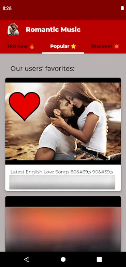 Romantic music & Love songs is the best Android app if you want to listen to nonstop hits that will help you to say I love you and express your feelings. More than 250 love video clips are ready to be shared as romantic video status. All our content is online, so you just have to do streaming! Explore our playlist to find the latest English love songs, have a nice Valentine's day party for shy people, or share romantic music to start a relationship with ballads. Enjoy the best private playlist and say I love you!