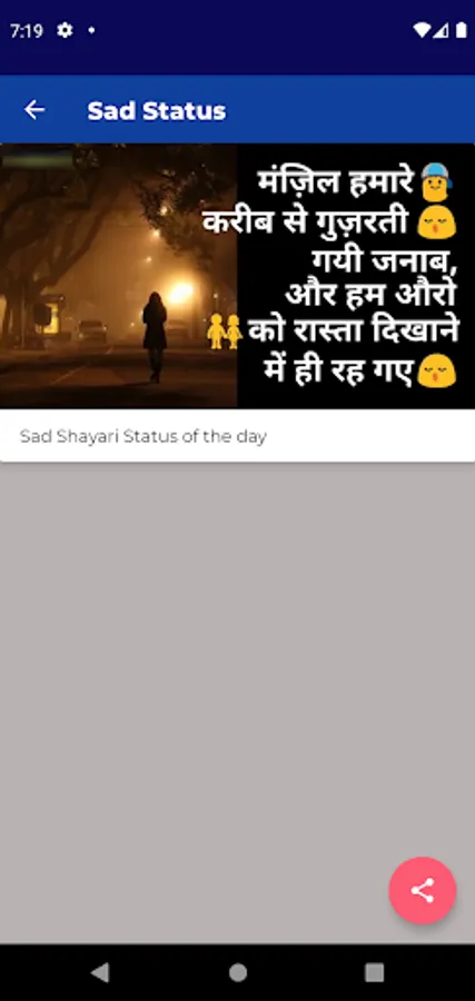 Sad Status - Hindi Shayari is the best Android app if you want to show your emotions & feelings. More than 250 videos of cute love attitude are prepared to be shared on social networks as sad status. Everything online! Just navigate through our playlist to find heart-touching poetry and free emotional WhatsApp status. Don't spend more time learning how to have a bad boy entry attitude, our sad quotes are the best touching Shayari app in Hindi, Telugu or Urdu.