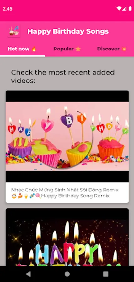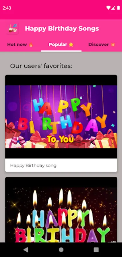 Happy Birthday Songs is the best Android app if you want to have a nice celebration party and sing while you have the birthday cake. We have selected the most trending songs in different languages like Spanish or English music and, of course, the karaoke music version! You can send exciting happy birthday wishes to your family or friends. The most original greetings videos!