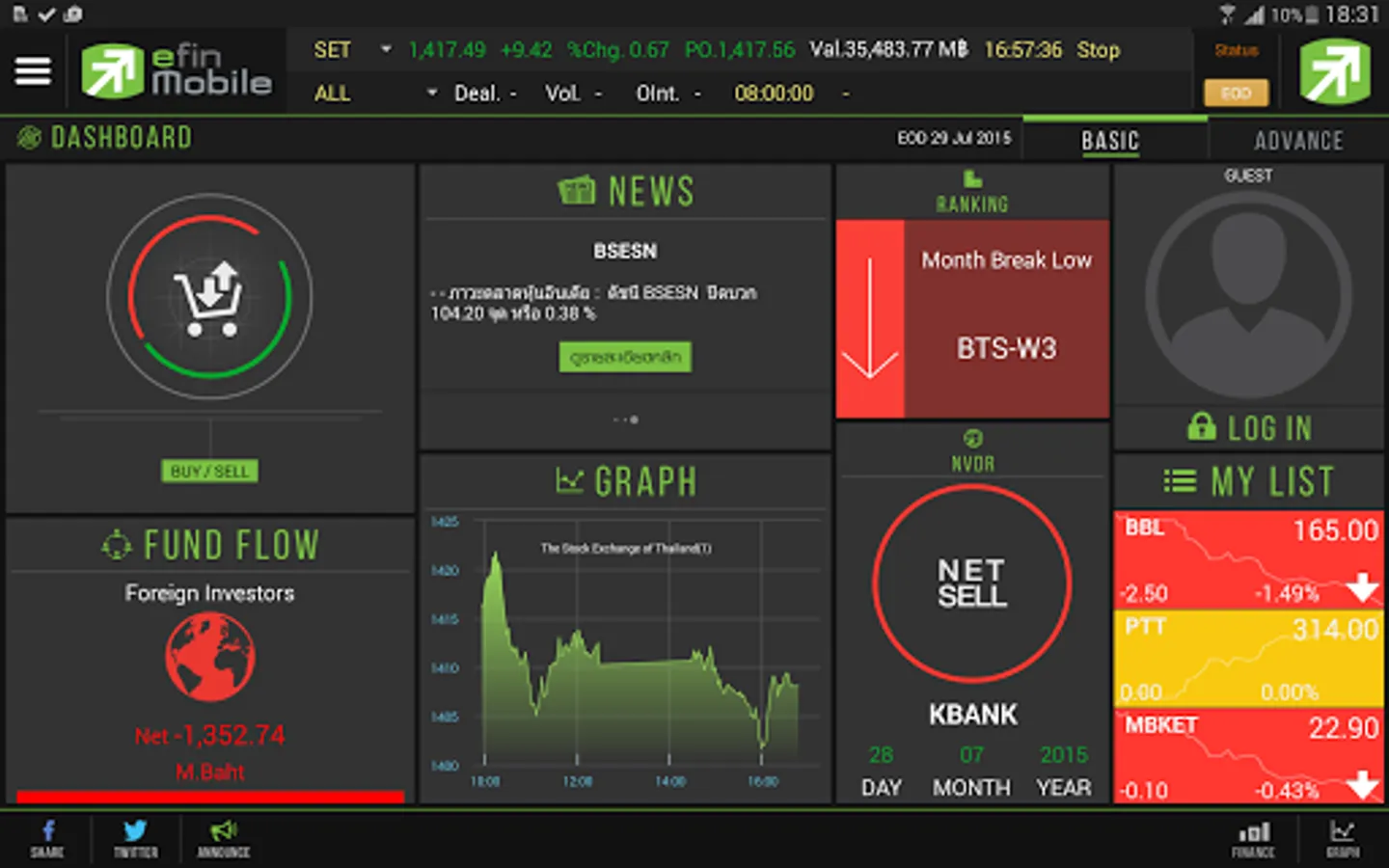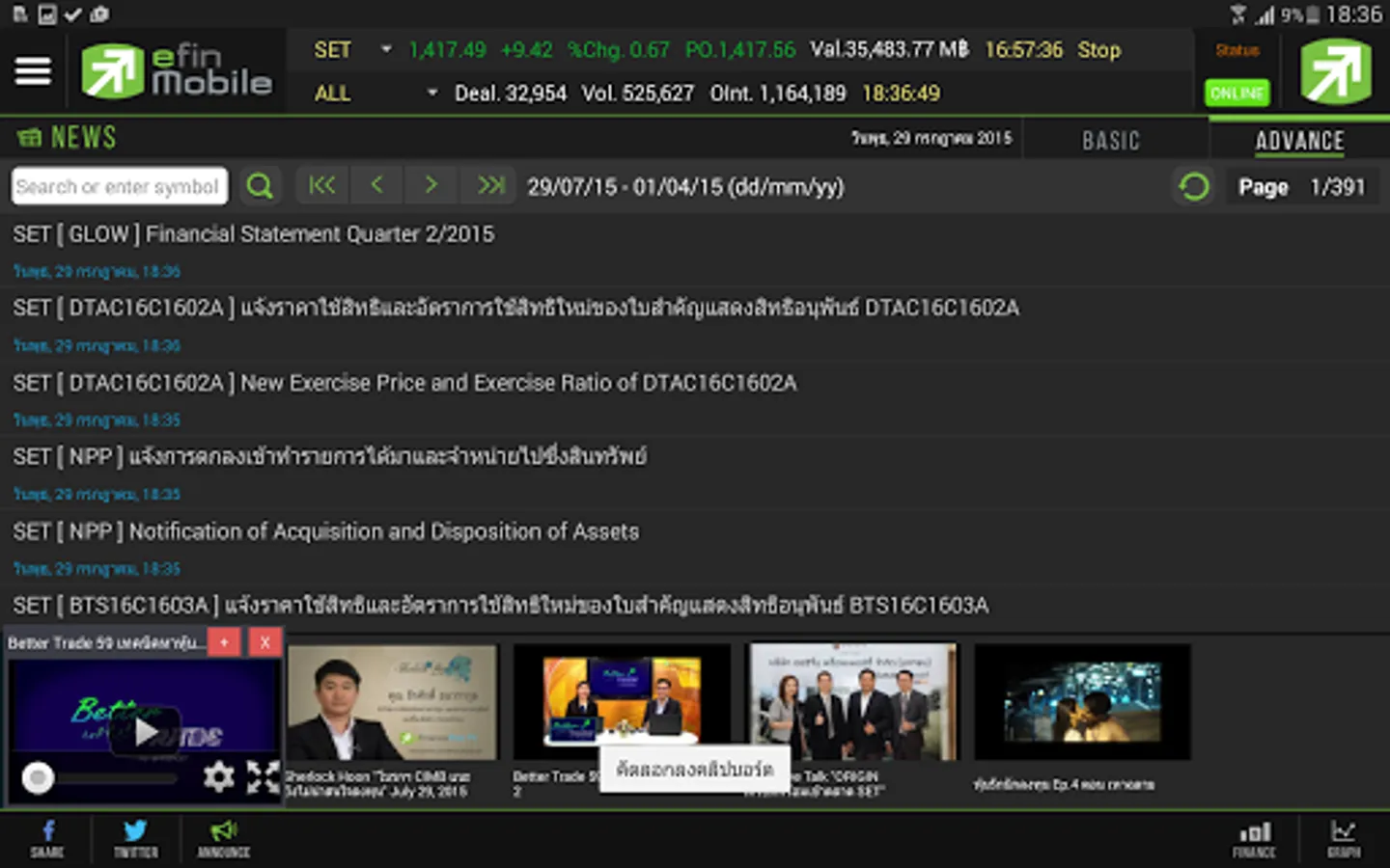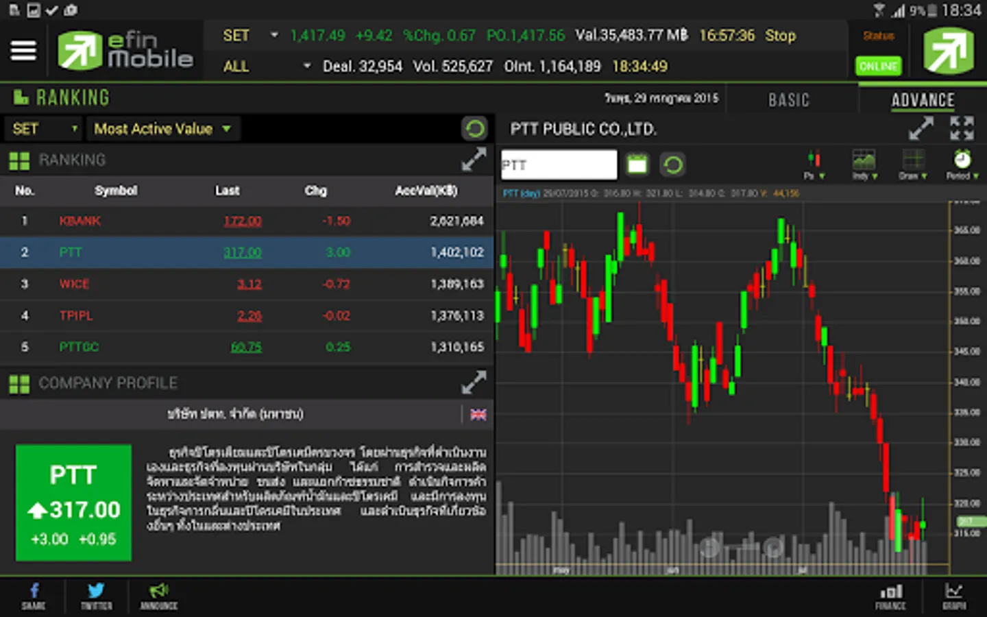 efin Mobile is an application for analyzing stocks, derivatives and funds that can be used anywhere, anytime. was developed by the company Online Asset Co., Ltd. or efin, a financial solution company that provides investment information and news. in the form of a website known as www.efinanceThai.com and provide efin StockPickUp application for investment analysis For clients, securities companies and investors, we currently offer services through leading brokerage firms for over 28 securities companies.