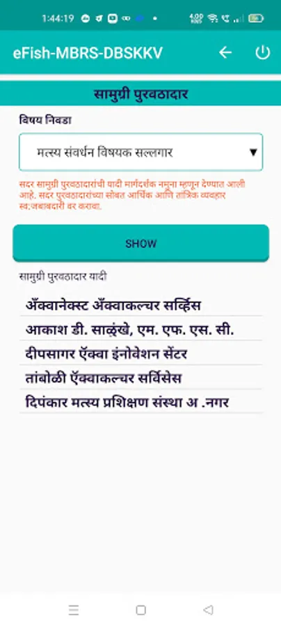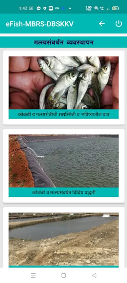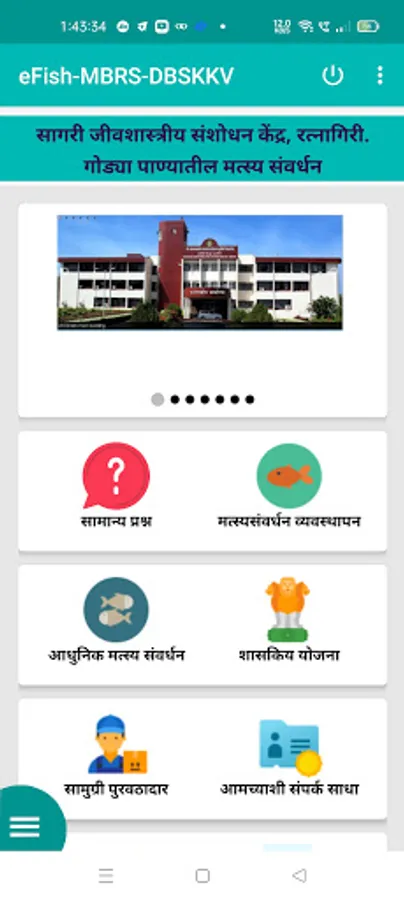This apps provides technical information on fresh water fish farming. The app is developed under the scheme “Vice Chancellor's special fund for out of box, novel research project” at Dr. Balasaheb Sawant Konkan Krishi Vidyapeeth, Dapoli.