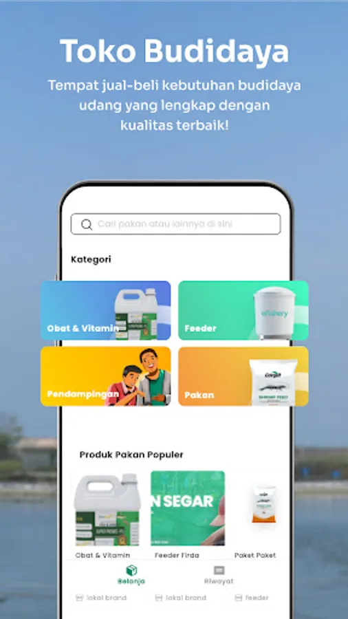 Cultivation Shop: Buy quality shrimp pond needs such as seeds, vitamins, medicine, or feed for maximum shrimp growth and development at affordable prices.