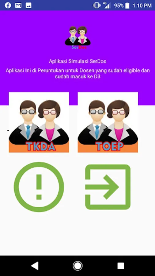 This test consists of TKDA Test and TOEP this application is used for Lecturers or Serdos candidates in PTS Lecturers