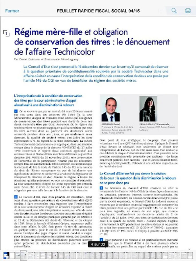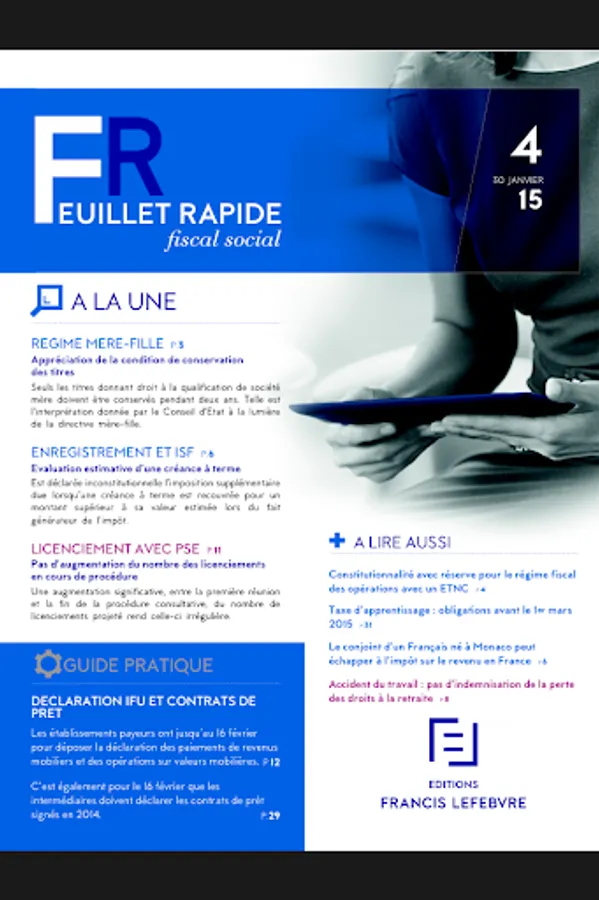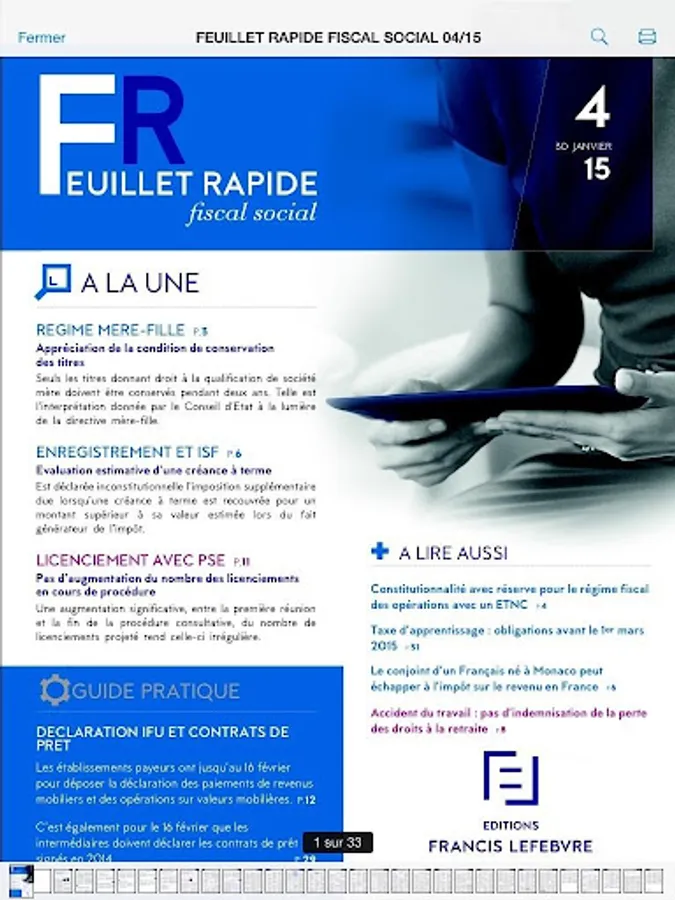 Lefebvre is a mobile application that provides access, at any time, the newsmagazines Editions Francis Lefebvre on tablets and smartphones. The news magazines provide legal information decrypted and commented by experts and editors always at the forefront of the latest legislative developments.
