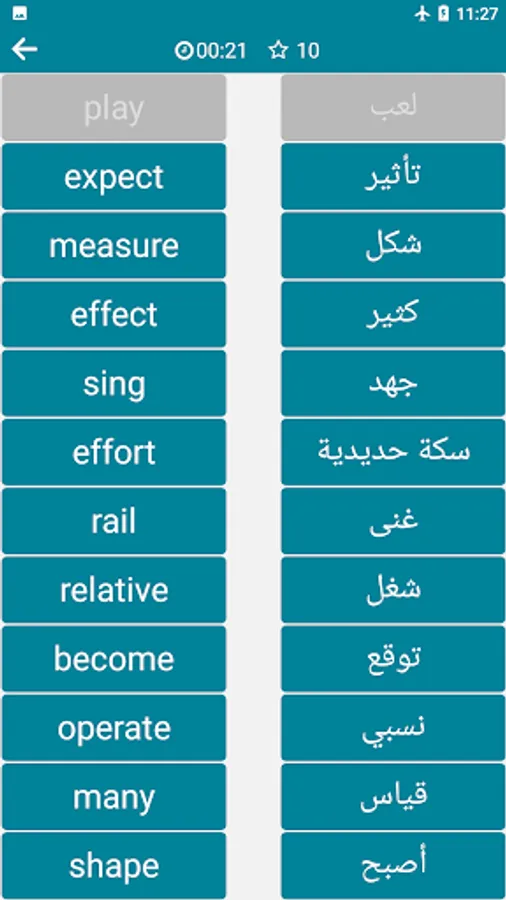 • You can learn by having fun in your spare time by trying to find the 16 words mixed in a table and their equivalents.