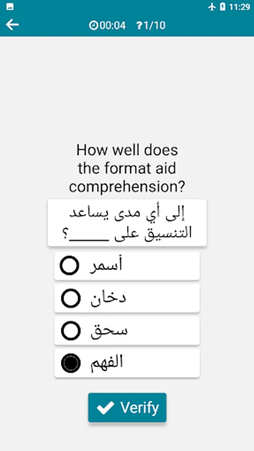 A quick Arabic English dictionary ( offline ), alternative translation, irregular verbs, frequently used Arabic sentences, tests (writing, listening, speaking) and games...