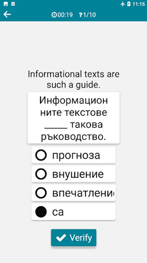 • A game where you compete against time, waiting for you to find out whether the relationship between word and meaning is true or false.