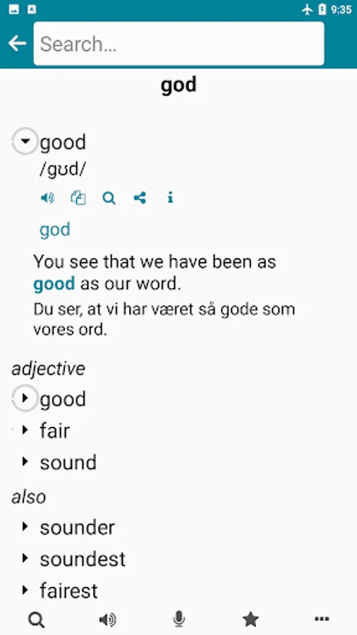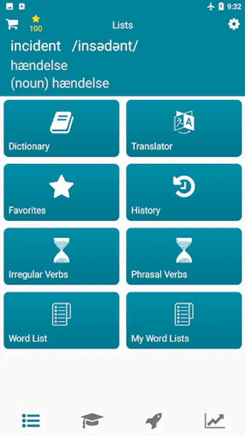 A quick English Danish dictionary ( offline ), alternative translation, irregular verbs, tests (writing, listening, speaking) and games...