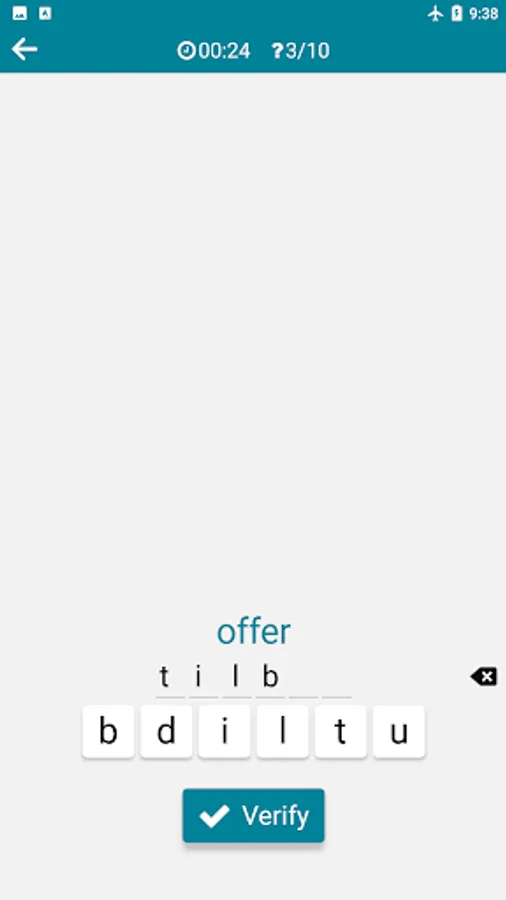 • A puzzle waiting for you to find a word by selecting the first and last letters of the mixed letters.