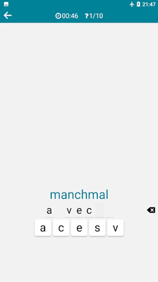 • A puzzle waiting for you to find a word by selecting the first and last letters of the mixed letters.