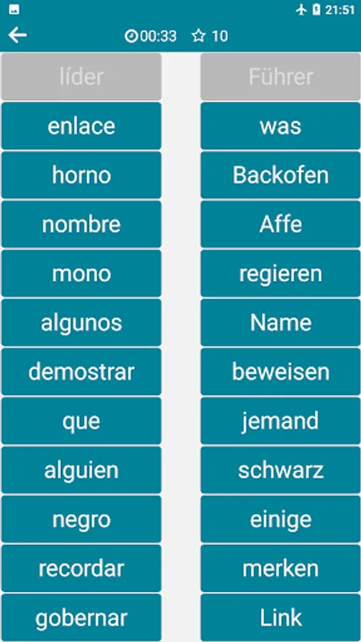 Learn German / Spanish words with games.