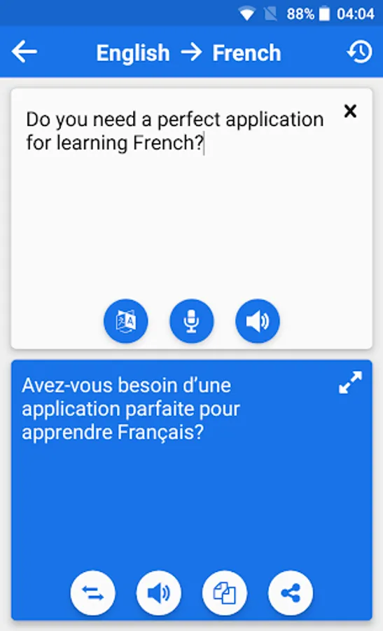 β’ It can instantly translate from English to French or from French to English without the need for internet. It works offline.