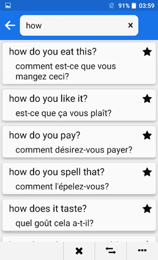 French to English 95,000 words and phrases. You can access hundreds of thousands of words and sentences (French translations) in the database very quickly.
