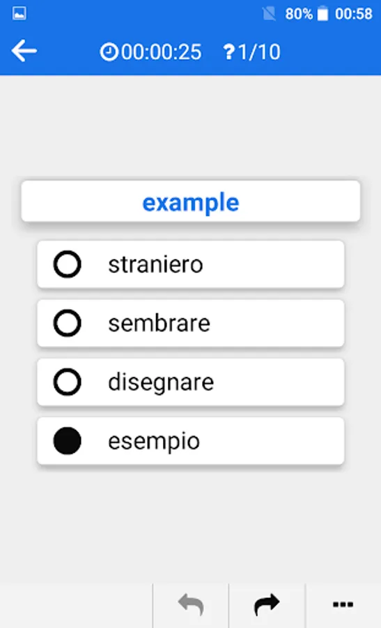 A quick dictionary, effective translation, irregular verbs, frequently used phrase sentences, tests and games... Everything you need to learn Italian quickly...