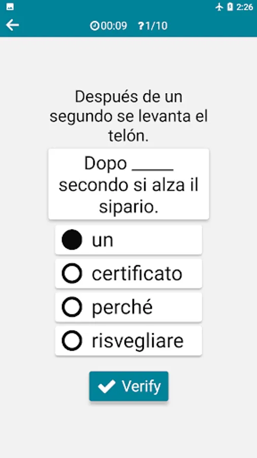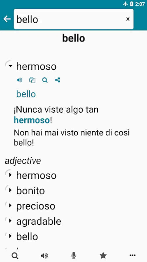 A quick Spanish Italian offline dictionary, alternative translation, frequently used Spanish / Italian sentences, tests (writing, listening, speaking) and games...
