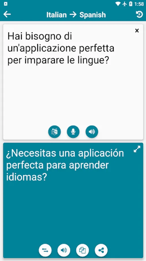 • It can instantly translate from Italian to Spanish or from Spanish to Italian without the need for internet. It works offline.