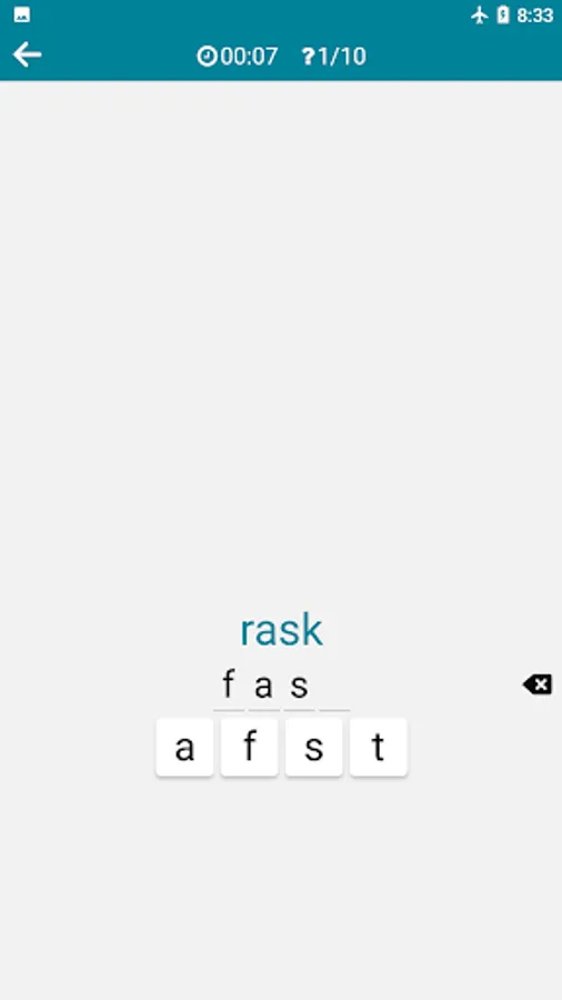 • A puzzle waiting for you to find a word by selecting the first and last letters of the mixed letters.