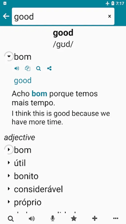 A quick Portuguese English offline dictionary, alternative translation, irregular verbs, frequently used Portuguese sentences, tests (writing, listening, speaking) and games...