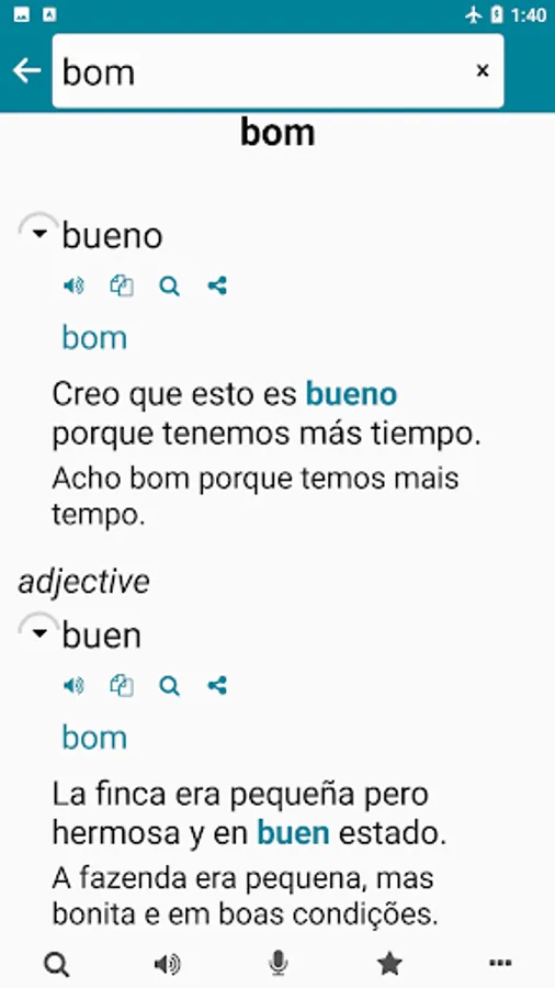 A quick Portuguese Spanish offline dictionary, alternative translation, frequently used sentences, tests (writing, listening, speaking) and games...