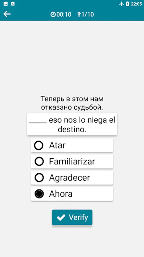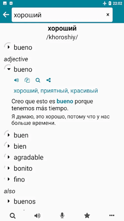 A quick Russian Spanish offline dictionary, alternative translation, frequently used sentences, tests (writing, listening, speaking) and games...