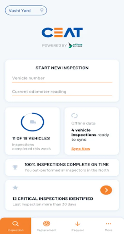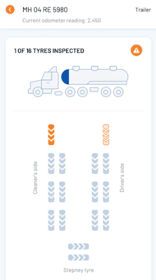 • Inspect vehicle's each tyre by providing odometer, tread depth, tyre no., wear tear and corrective actions.