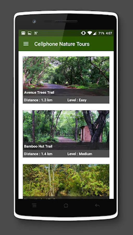 A cellphone tour is an audio tour where pre-recorded or stream audio interpretation for a heritage site or a cultural exhibit is provided via a cell phone. Points of interest of tour stops are identified and a number is allotted to them. The visitor need to send these numbers to the mobile service provider through the cellphone and listen to the recorded narration. Cell phone tours are popular in foreign countries however they have been not tried in India. Having a mobile assisted nature trails will open up a large section of society to nature study within the city limits on their own.