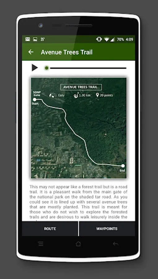 The app describes 50 species (48 trees and two species of insects) along with their pictures and detailed taxonomical and ecological information. The content is provided in text form as well as in audio format. The text form includes whole information while only relevant information is used for the audio commentary. The language has been kept non-technical. In case you wish to add your findings from a particular trail, you could write to us or share it on our Facebook Group.
