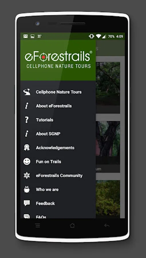 This eForestrails- SGNP is first of the series which includes three nature trails of Sanjay Gandhi National Park (SGNP). There are currently seven nature trails in SGNP however only three have been chosen for the cellphone nature tour experience. Each trail covers 20 points of interests found along the designated nature trail. The app has been developed to promote self-guided nature trails for the national parks and sanctuaries as well as in other wildlife reserves. The highlight of the app is its text and audio commentary which gives a live experience. The trails are GPS mapped and points of interested geotagged which will help in easy navigation on the trail. Each point of interest is marked on the trail as well as on the site.