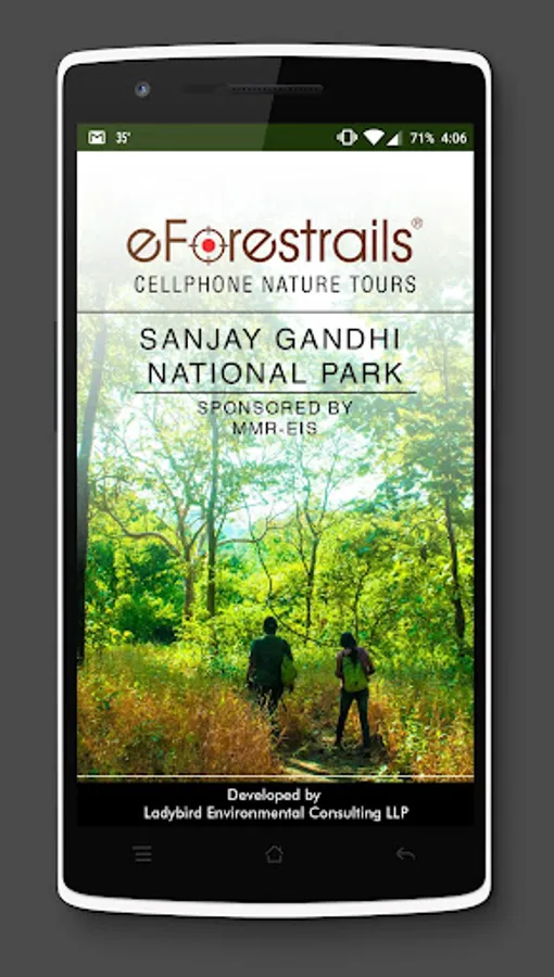eForestrails is a product of Ladybird Environmental Consulting LLP is a series of nature based Mobile apps developed to promote cellphone nature tours widely across the wilderness of the India. This app is developed under the financial assistance of MMR Environment Improvement Society and collaboration with Forest Department of Sanjay Gandhi National Park