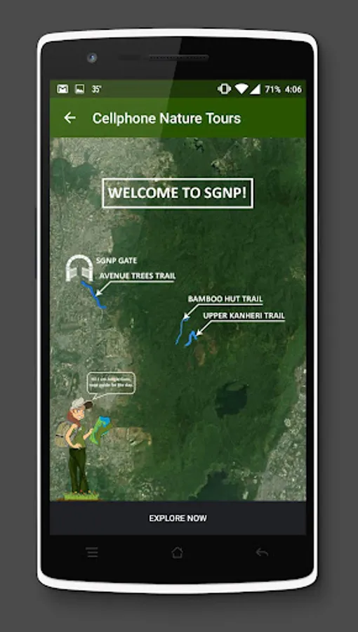Sanjay Gandhi National Park is unique protected area in terms of its location within a metropolitan city like Mumbai. It also highest visited urban park with more than 1 lakh visitors visiting during weekends. Inspite of this footfall the identity of the park remains to be a picnic spot for large number of population. Also urbanites normally do not venture on nature trails on their own for several reasons. Lack of guidance and knowledge about nature trails has deterred urbanites from venturing into their own city forest. Additionally it is essential to have a tour guide who escorts through these trails.By using the mobile technology all above-problems could be resolved which will encourage urbanites to venture out and explore the wilderness on their own. Our mobile app therefore is an innovation replacing the mobile service provider and making it free for visitors to use it.