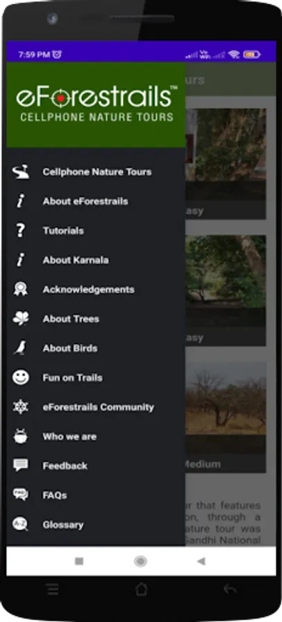 eForestrails-Karnala is a product of iNaturewatch Foundation, developed in technical collaboration with Ladybird Environmental Consulting LLP. This is a series of nature-based Mobile apps developed to promote cellphone nature tours widely across the wilderness of India. This app is developed under the financial assistance of DCB Bank Ltd and in collaboration with Thane Forest Department. Having mobile-assisted nature trails will allow a large section of society to study and enjoy nature within the city limits on their own.