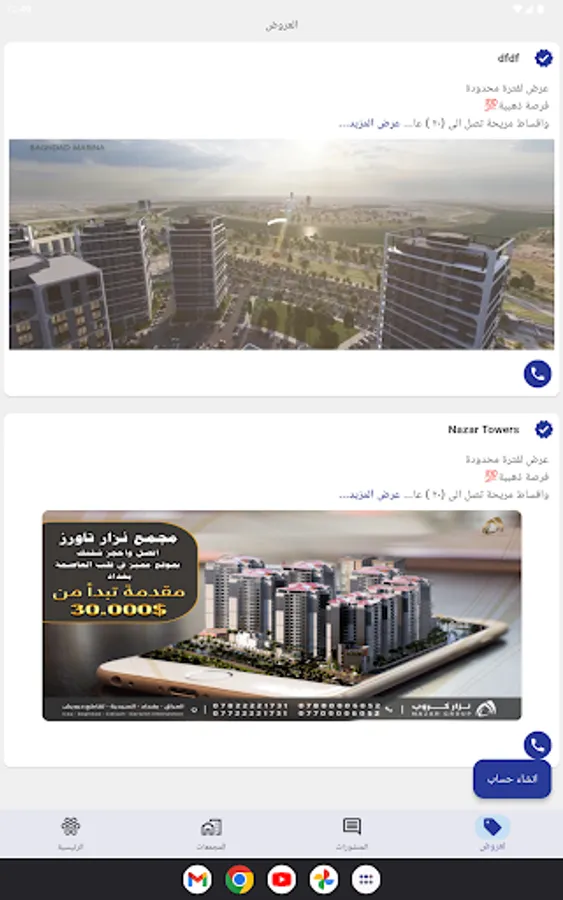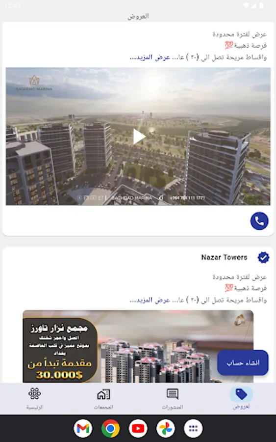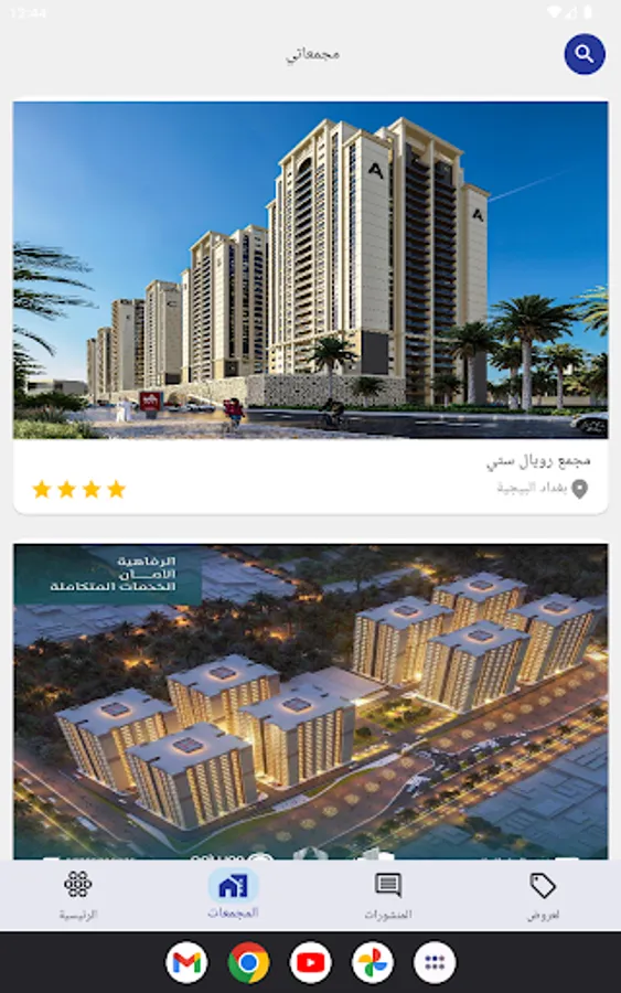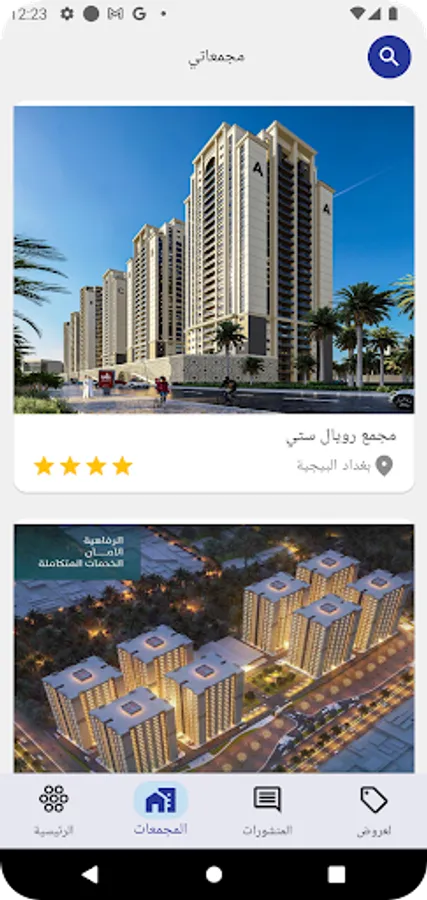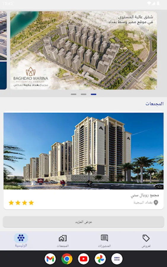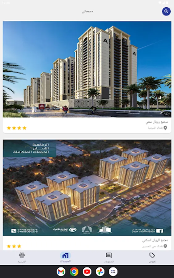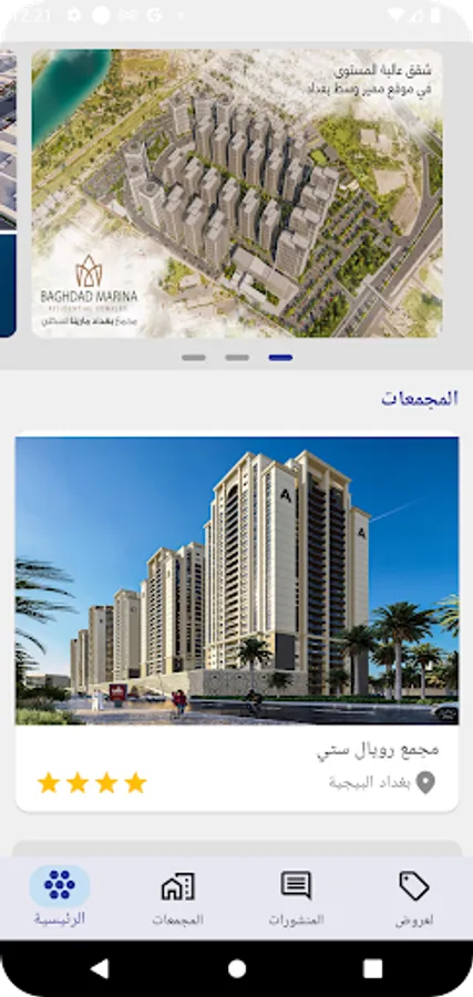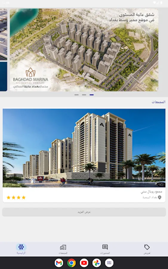 The application represents an integrated guide to residential complexes in Iraq, vertical and horizontal.