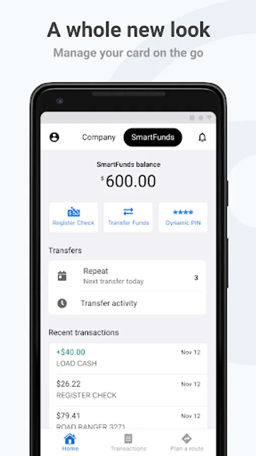 WEX CardControl gives you on-the-go access to your EFS or Fleet One card functions. Get real-time card balances, see transaction details, find fuel locations, and more. Designed with drivers in mind, you can quickly and easily manage your card anytime, anywhere.