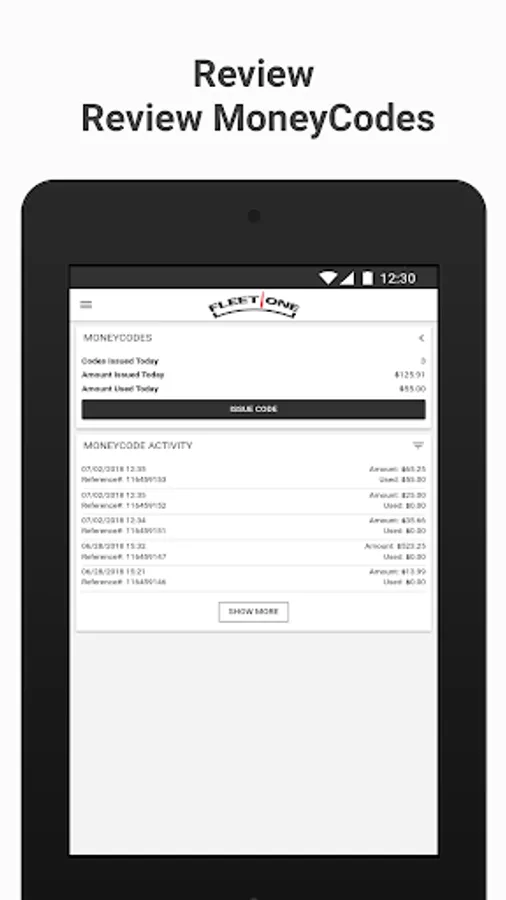 Simple. Convenient. Instant. The Fleet One CarrierControl app provides the fleet manager the ability to generate a MoneyCode when using the Fleet One card isn't an option. With a MoneyCode, a driver can receive emergency cash, pay for roadside services, repairs, lumper fees, or fuel purchases.