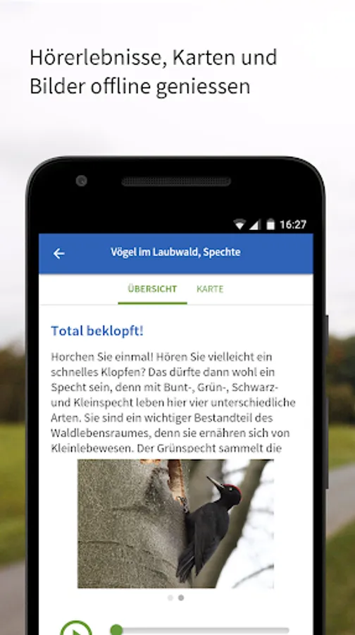 It leads with a navigation function at 22 walking and cycling routes to the attractions of the landscape. About images, short texts, sound files and information stations locally experienced adults and children to a lot of information. Typical animal - and plant species, their habitats and hidden treasures of the cultural landscape will be presented in short articles.