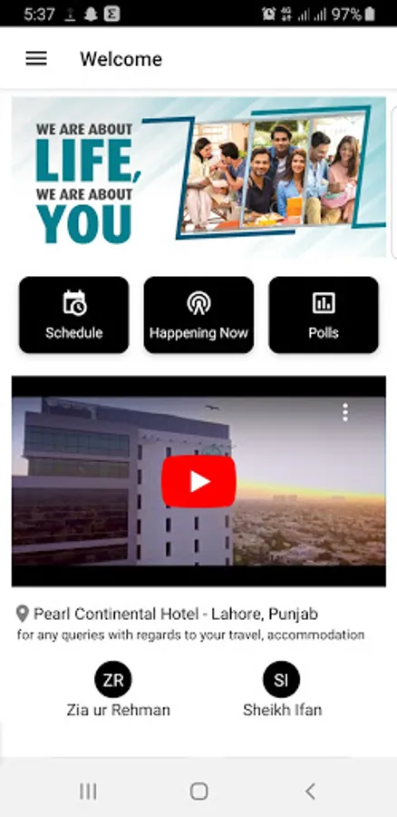 To provide event related information to all the participants of the event like. Event schedule, Polls, Related Videos and user's profile.