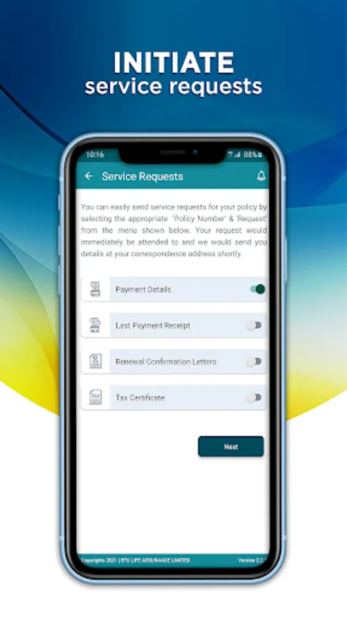 • Receive notifications on your policy renewal, confirmation of premium payment and in case your policy has lapsed.