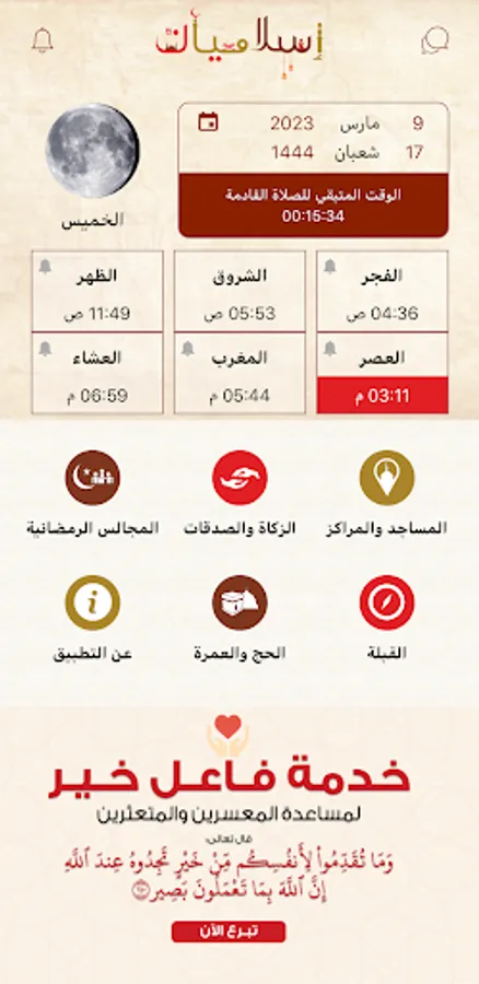 "Islamiyat" is a cultural application provided by the Information & eGovernment Authority (iGA) in cooperation with the Ministry of Justice, Islamic Affairs & Awqaf and the Ministry of Interior in the Kingdom of Bahrain. The app provides the latest updates relating to the Hijri Islamic calendar, official prayer timings, service features such as Qibla direction, the locations of mosques and Islamic centres in the Kingdom of Bahrain, in addition to the ability to calculate Zakat and pay charitable donations.