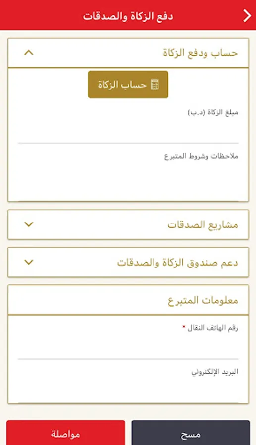 • Zakat & Donations: Users can calculate and pay the amount of zakat that must be paid and donate to charity projects that are run by the Zakat and Charity Fund in Ministry of Justice, Islamic Affairs and Awqaf.