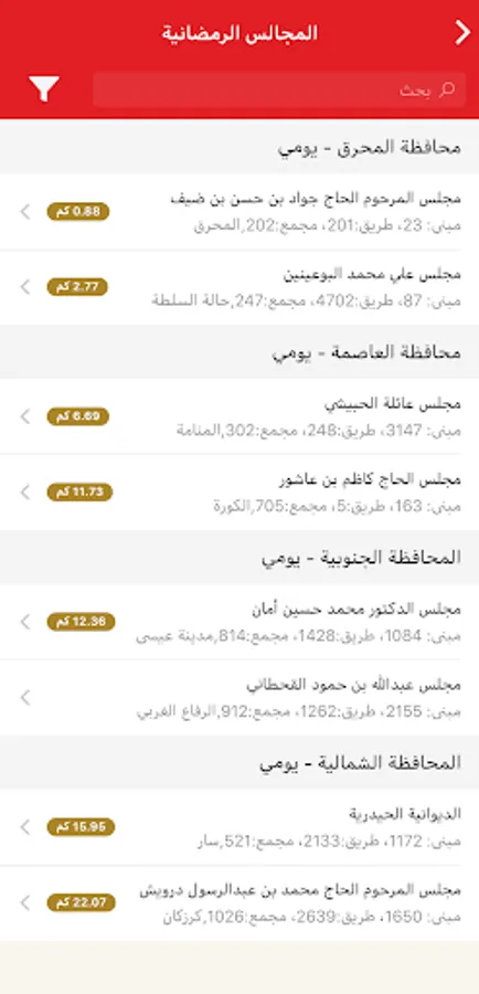 • Ramadan Majalis: An inclusive directory of all the daily and weekly Majalis held all over the Kingdom of Bahrain during the month of Ramadan the directory includes all the Majalis names, contact details, timings, the ability to locate the desired Majalis, as well as search for the nearest Majlis to the user.