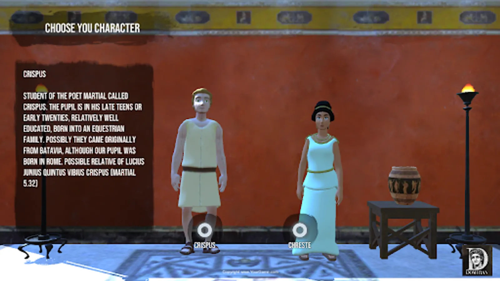 Who murdered the Roman emperor Domitian? Follow Crispus and Chreste on a journey through ancient Rome and the last day of Domitian’s life. Using 3D animation, that brings the city of the Roman emperors to life, the game takes the player to some of the most famous sites of ancient Rome: the Palatine, the Forum, the Circus Maximus, the Colosseum, and the Stadium of Domitian (now the Piazza Navona). Meeting gladiators and soldiers, among other characters, along the way, the player will learn about life in ancient Rome and more about the emperor Domitian – the youngest son of the emperor Vespasian who became ruler of the Roman world in 81AD, before he was 30 years old. After 15 years in power, Domitian had become increasingly paranoid and tyrannically. As we enter the Palace on the last day of Domitian’s life, the emperor has received a prophesy foretelling his death – but who will be his killer? It is too late to save the emperor, but not too late to solve the mystery! Complete the mini games and piece together the clues to discover who murdered Domitian on the 18th September 96AD.
